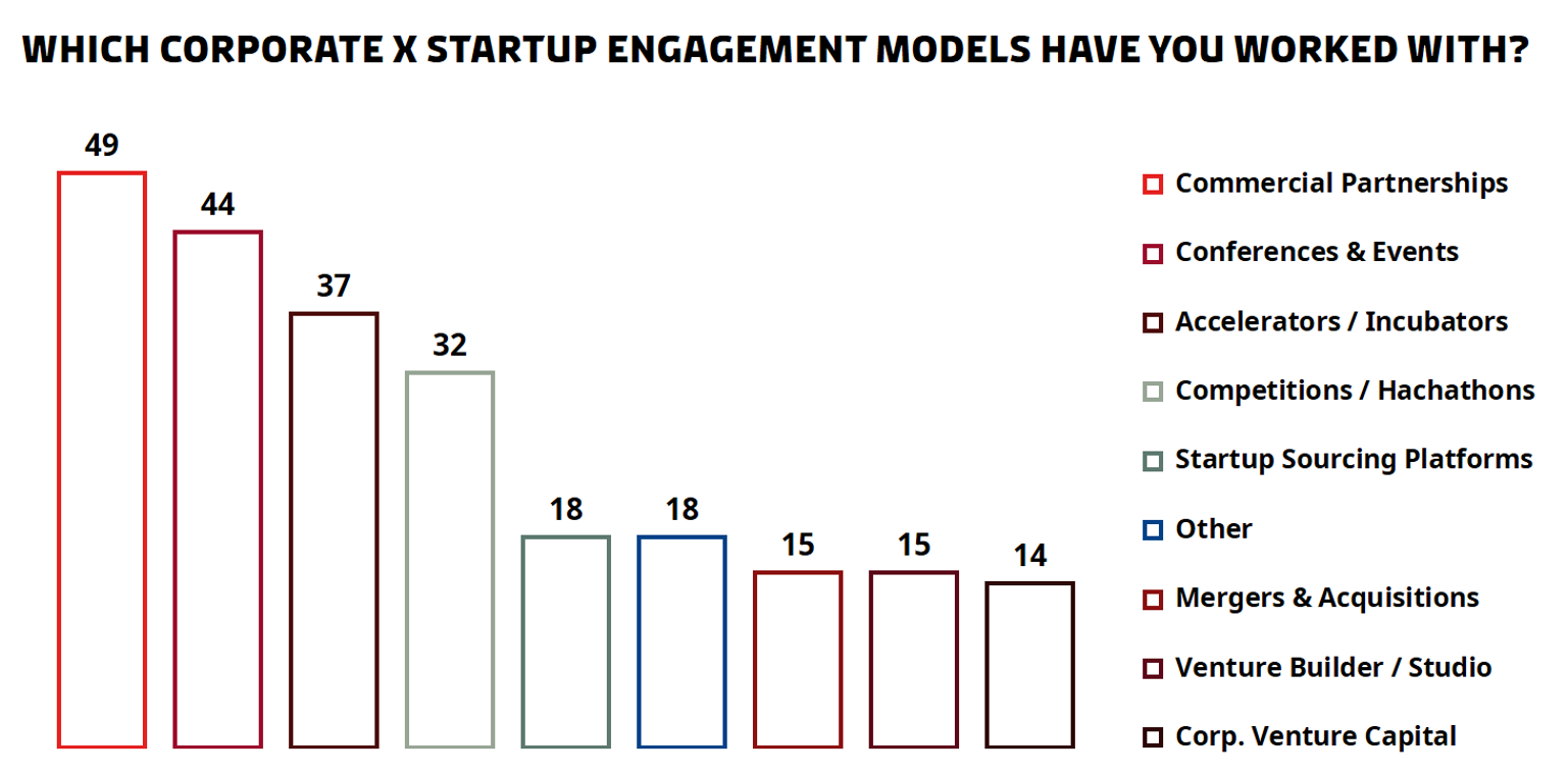 Explore new engagement models, such as venture studios (partnerships around startup creation) and the “venture client model” pioneered in BMW’s Startup Garage (commercial partnerships/pilots with startups). As the market is rapidly moving away from costly corporate accelerators, creative, versatile, and cost-effective alternatives stand by to help you improve your return on innovation activities.