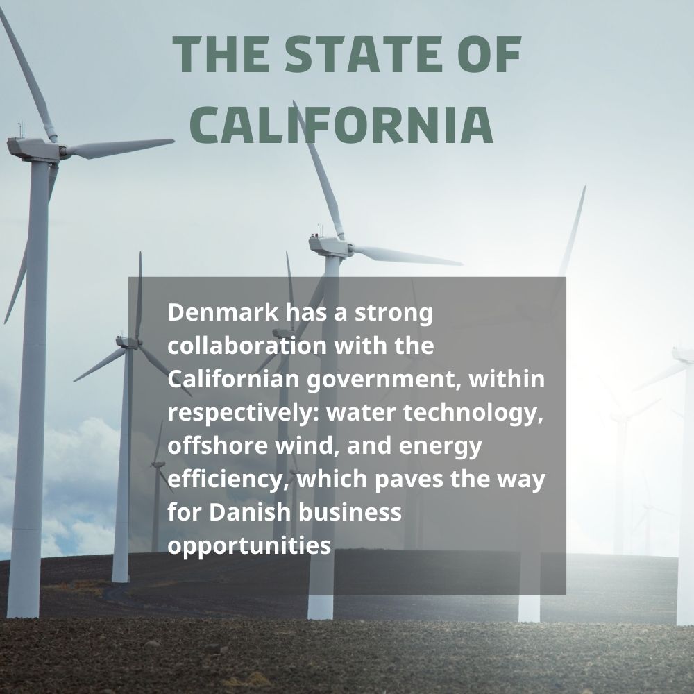 Denmark and California share goals and ambitions as two of the world’s frontrunners in green energy transition, energy efficiency and reducing GHG emissions – and now the two frontrunners also share experiences on policy, innovation, and green technologies in order to reach carbon neutrality.